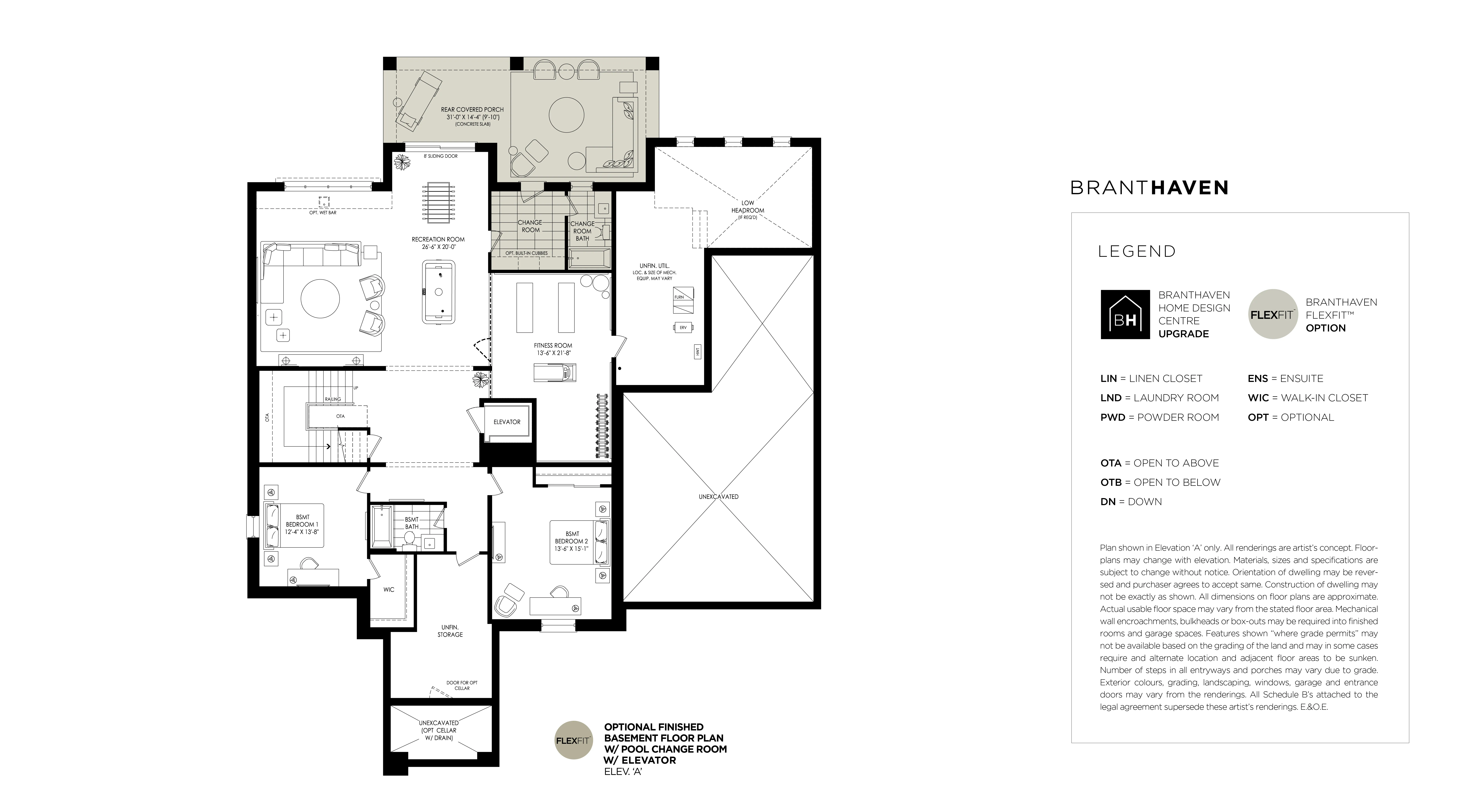 OPTIONAL FINISHED BASEMENT W/ ELEVATOR W/ POOL CANGE ROOM